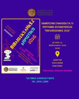 Ενημερωτική Συνάντηση για το Πρόγραμμα Φιλαναγνωσίας «Βιβλιοσκώληκες 2026» στη Δημοτική Βιβλιοθήκη Κομοτηνής